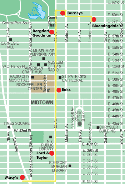 По аналогии с "Музейной Милей", на которой находятся самые известные музеи Америки, на Манхеттене есть и "Миля Моды" - здесь, на небольшом пятачке Мидтауна - от 34 до 61-й улиц - сосредоточены самые дорогие и самые знаменитые нью-йоркские универмаги: