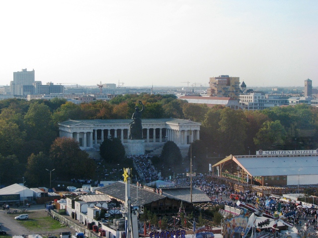 Для того, чтобы оценить весь масштаб действа, надо обязательно забраться на огромное смотровое колесо, стоящее в одном конце поля Theresienwiese. За пару евриков с 50-метровой высоты можно будет оценить весь размах Октоберфеста, полюбоваться аттракционами и прикинуть, сколько народу на данный момент гуляет по самому полю, и сколько десятков тысяч сидит в палатках.