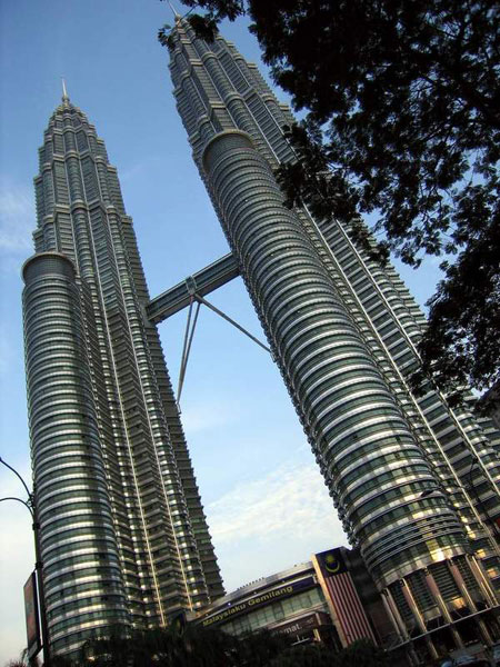 Внутри небоскрёбов: офисный центр, на первых этажах (а как вы хотели?) бутики с одеждой, парочка ресторанов и сувенирных лавок. Организуются бесплатные экскурсии на знаменитый "скай-бридж", которые знаменит прежде всего своим участием в съёмках фильма "Западня" с Шоном Коннери и Кэтрин Зетой Джонс, ну и тем, что является самым высоким небесным мостом в мире. В бесплатности зарыты несколько подвохов. Первый - надо приходить за купонами ранним утром (мы явились к обеду, пришлось задействовать тяжёлую для мусульман артиллерию: длинные Дашины ноги и очаровательную Дашину улыбку). Второй - необходимо пройти кордон охраны, изрядно облучившись рентгенами, а затем выслушать получасовые оды нефтяной корпорации "Петронас" в импровизированном 3D-кинотеатре. Третий - собственно, на сам скайбридж вас запускают на пару минут. Ну и четвёртый - смотреть там особо не на что!