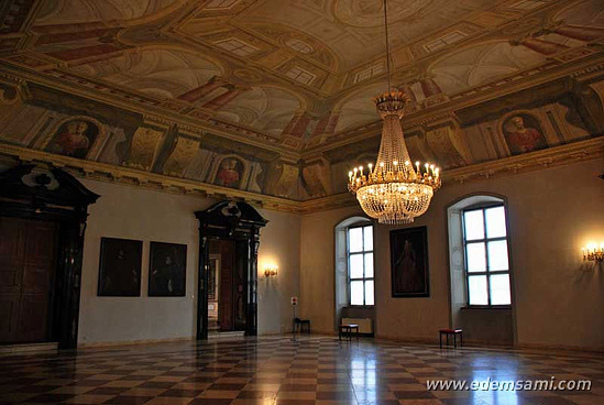 Большие гобелены с момента изобретения техники создания подобных полотен пользовались огромной популярностью при всех дворах Европы. Правильнее было бы называть такие тканные картины арацци или арасы по названию французского города, где, начиная с 14 века и стали производиться безворсовые ковры. А гобелен - это ставшая нарицательной фамилия братьев Гобеленов из Франции, где на своей мануфактуре в 17 веке они и ткали арасы. Особой популярностью позже стали пользоваться гобелены бельгийских мануфактур. Здесь - залы Апартаментов Электора.