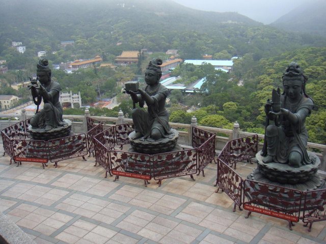 Как всякий нормальный турист, съездил в монастырь Пу Линь (он же По Лин) на острове Лантау - это там, где находится гигантская и филигранно исполненная статуя сидящего Будды, если не путаю, высотой около 35 метров, и на пик Виктория, с которого весь Гонконг - как на ладони. Оказалось, что мне очень повезло с погодой - обычно из-за тумана и низких тропических облаков города с такой высоты не видно. Вообще ГК - город инженерных рекордов. Статуя Будды чуть ли не самая большая в мире и точно - в Китае, также за короткое время моего визита мне случилось прокатиться на самой протяженной в Азии канатной дороге и подняться на самом длинном в мире эскалаторе.