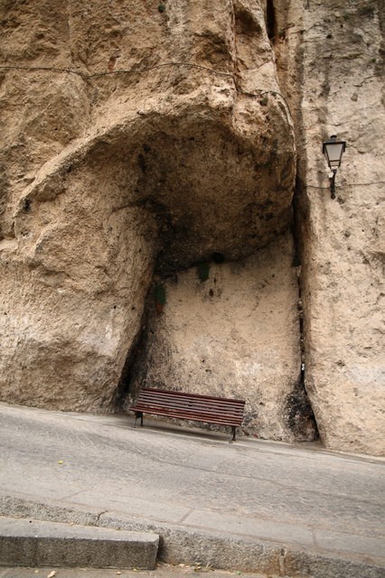 Куэнка - очень странный город. Город, который как будто в чем-то провинился и навсегда превратился в каменное изваяние. Ну вот, к примеру, этот великан: кажется, еще чуть-чуть - и он снисходительно улыбнется, зажжет сигарету-фонарь и, пыхая дымом вам в лицо, спросит: "Ну что, чуваки, нравится вам в нашем городе?"