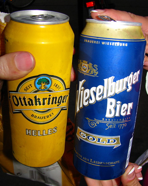Zipfer – самое раскрученное австрийское пиво и надо отдать должное, довольно вкусное. Посредине в желтой банке – посредственный зальцбургский бирмикс. Зальцбург, судя по всему совсем не пивной город – все сваренное здесь пиво, на мой вкус значительно уступает аналогам из других городов страны. А это пиво, не смотря на серьезный внешний вид, пожалуй, худшее, что я пил в Австрии: