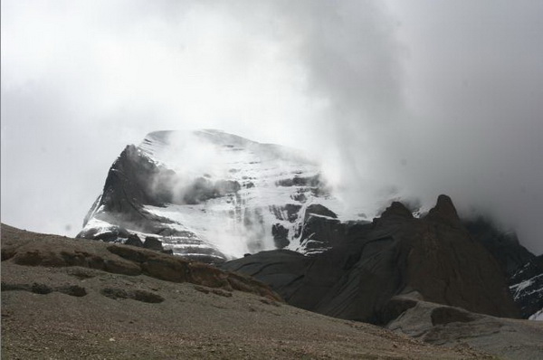 Кайлас – европейское название горы, у китайцев — Гандисышань (冈底斯山) либо Ганжэньбоци (冈仁波齐), в традиции бон — Юндрунг Гуцег, в древних текстах на тибетском языке её называют Канг Римпоче (Kang Rimpoche) — "Драгоценная снежная гора" или "Великая снежная". О высоте Кайласа идут споры от 6666 м. до 6714м. Невозможность покорения Кайласа обусловливает невозможность точного замера. Кайлас среди других вершин выделяет пирамидальная форма со снежной шапкой и гранями, сориентированными практически точно по сторонам света. На южной стороне расположена вертикальная трещина, которая примерно по центру пересечена горизонтальной. Это напоминает свастику. Кайлас иногда так и называют "Горой Свастики". С Кайласа берут свои истоки 4 главные реки Азии: Инд, Сатледж, Брахмапутра и Карнали. Древние религии Непала и Китая считают её священной, наделённой божественными силами, и поклоняются ей. К ней совершаются паломничества с целью совершения коры. Верующие четырёх религий — индуисты, буддисты, джайны и приверженцы бон — считают эту необычайную гору "сердцем мира", "осью земли".