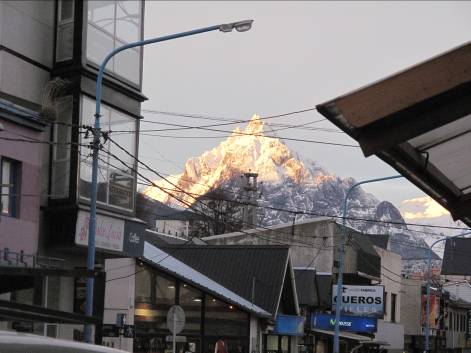 Ушуайя - небольшой город. Там нет высоток, дома двух-трех-этажные. Улицы параллельны друг другу, между ними - либо короткие переходы, либо лестницы, т.к. улицы располагаются над главной - San Martin, одна выше другой. San Martin - череда сувенирных магазинов, по которым постоянно туда-сюда шарахается народ. Первым делом купили игрушечного пингвина - Санька заказывала. Ну все, программу минимум выполнили - домой пустят:-).