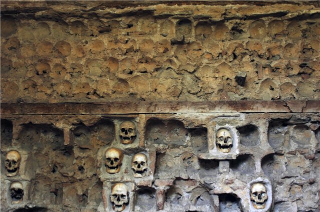 Я вообще очень прохладно отношусь к использованию человеческих костей в качестве декоративного материала, как это сделано в известных польских и чешских костницах, да и вообще к выставлению костей на всеобщее обозрение, как это можно увидеть и в наших монастырях. Но в данном случае этот чудовищный по своей сути монумент, поставленный в устрашение и стоящий во славу, трудно оценить однозначно.