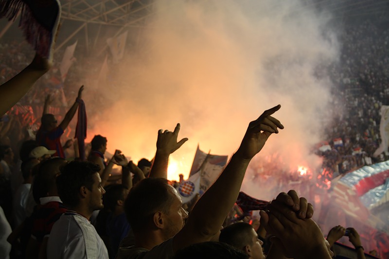 Но нет, граница все-таки чисто формальная, поэтому несемся в Сплит! По дороге мы узнаем, что местный Хайдук сегодня играет в Лиге Европы с румынским Динамо. Не узнать сложно - чем ближе к Сплиту, тем больше набитых фанатами и увешанных флагами машин. Глаза наши загораются - хотим на стадион!