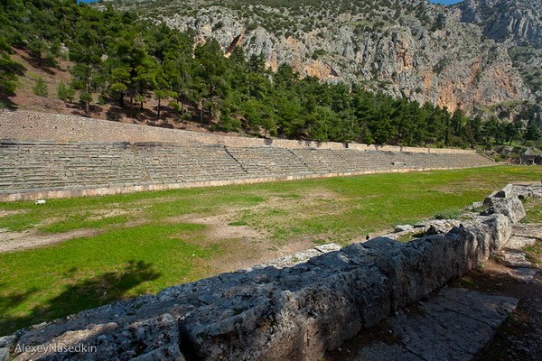 На склоне знаменитой горы Парнас, недалеко от Коринфского залива в Греции, приютились развалины античного города Дельфы. Известен он прежде всего тем, что именно здесь в свое время проводились Дельфийские игры - по популярности уступавшие лишь Олимпийским. И именно Дельфы по преданию считались центром мира, сотворенным Зевсом. Оттуда родом и Аполлон, и даже Пуп Земли тоже там.