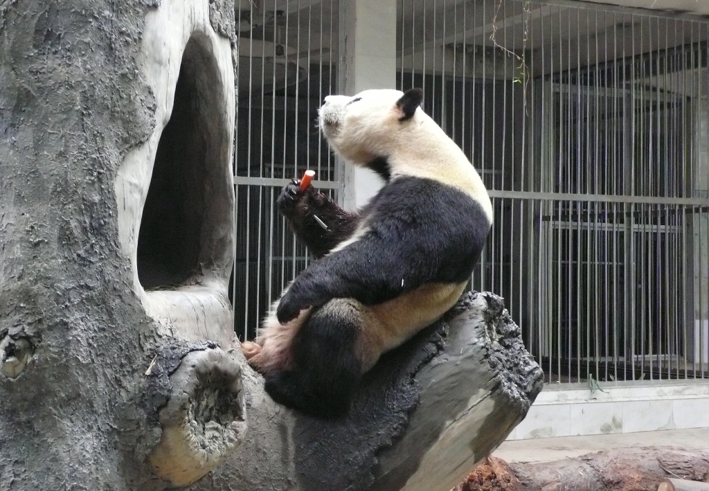 Панды, оказывается, едят не только бамбук, но и другие овощи, в том числе морковку:-)