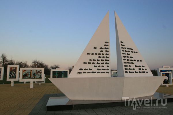 Белый парусник, неосуществленная мечта загубленного детства. На парусах - имена детей из архивов концлагеря.