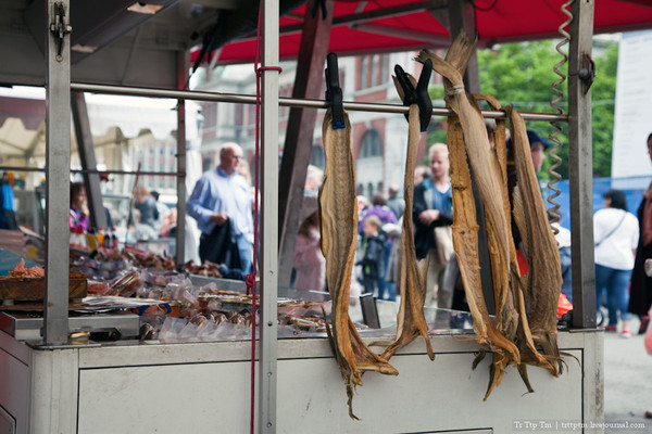 Ну и как-же на рыбном рынке могло обойтись без традиционной норвежской сушёной трески.