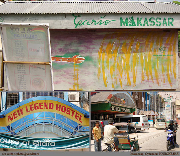 3. В Макассаре ехать "в центр" глупо. Повторюсь, это не туристический город, вы можете оказаться в районе, где нет ни одной гостинице, или в порт вас привезут, где гостиниц много, но жить в них вы не захотите, поскольку шумно, грязно и торговля даже на ночь не прекращается. Определитесь с гостиницей заранее - и не тратьте много времени на это. В Макассаре вы будете проездом, чтобы ехать дальше на север в Тораджу, либо на юг или на север крайний, где природа, пляжи и тишина.