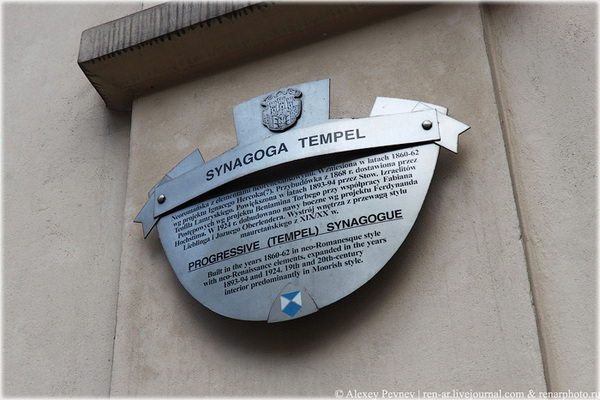 Первая синагога Казимежа, которая попалась на моем пути, была прогрессивная синагога Темпель, расположенная на улице Мёдова (Miodowa), 24. Это первая синагога в моей жизни, которую я посетил. Конечно, в моих других путешествиях они иногда попадались на моем пути, но большей частью они были не действующие, да и внутрь я никогда не заходил. Таким образом событие можно назвать, в некотором роде, знаковым. К тому же я рад, что первой исследованной синагогой оказалась именно эта, рядом особенностью отличающаяся от других.