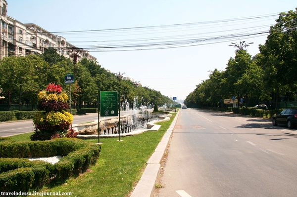 Ну да ладно, впервые в Бухаресте мы замечаем деревья и тень, где можно укрыться от прямых солнечных лучей. Такой вот бульвар, который ведет от Дворца Чаушеску до главной площади города