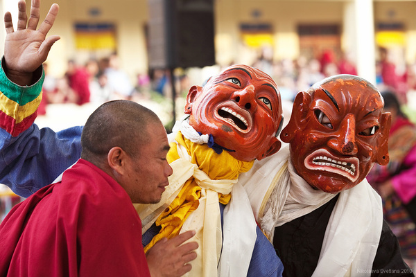 Вот, например, танцует защитник Дхармы Махакала – персонаж, относящийся к просветленным существам, но которого все рядовые тибетцы очень боятся, признавая в нем демона.