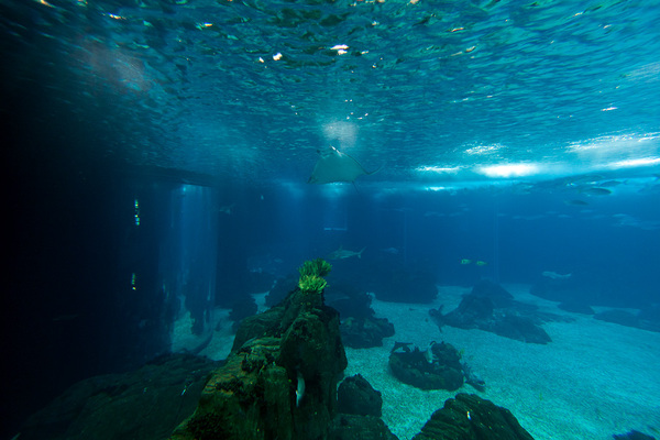 В воде скользят акулы разных видов, плывут крупные скаты, парит огромная манта, из-за скал выглядывают групперы. Но главная звезда океанариума - это большая рыба-луна. Многие посетители приходят сюда специально посмотреть на эту удивительную рыбу и сфотографироваться на её фоне. Люди переходят от одной обзорной площадки к другой, чтобы снова и снова рыба-луна задумчиво проплыла рядом с ними.