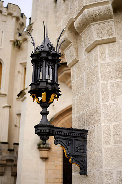 Стены замка и внутри, и снаружи украшены охотничьими трофеями его прежних владельцев.
