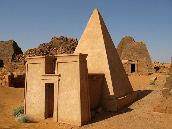 Отреставрированная пирамида. Еще пирамида. Древний нубийский манускрипт (из Википедии).