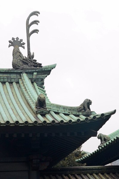 В храме пробыл не очень долго, вышел на улицу, сфотографировал крыши, украшенные фигурками различных животных. Еще один тигр.