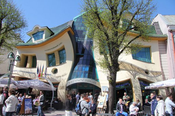 Примерно на середине улицы неприметно стоит кривой домик - Krzywy Domik. Внутри - офисные помещения и магазинчики.
