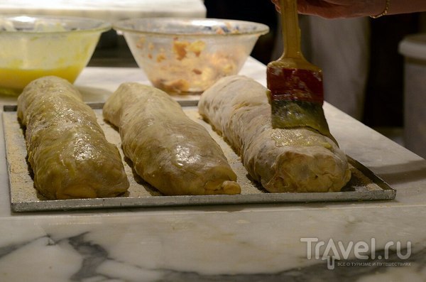 Итак, вдоволь нагулявшись по паркам, мы, следуя стрелочкам с указателями, пошли в пекарню, где обещали научить выпекать самый правильный в мире штрудель. Забегая вперед, скажу, что, конечно, ничему за 20 минут научиться нельзя, тем более, что используют заранее подготовленные материалы, но если относиться к этому, как веселому шоу для туристов, то все совсем неплохо. На входе встречают улыбкой.