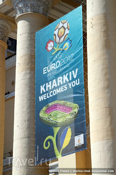 Датчане выиграли 1:0, положив начало провального для голландцев чемпионата Европы. На следующий день мы отправились на повторную прогулку по Харькову - уже с целью подробнее присмотреться к его достопримечательностям, а не к футбольному антуражу. На площади Свободы на сей раз дошли до здания Госпрома (дома государственной промышленности) - шедевра стиля конструктивизм мирового значения