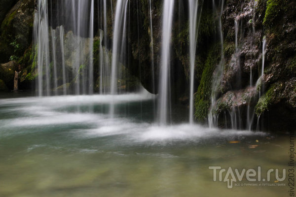 Дотянули с завтраками, сборами и ленивым брожением по пляжу до девяти - стало скучно и жарко. Все убрали в багажник и поехали к водопаду Джур-Джур (находится на трассе Алушта-Судак, в Солнечногорском поворот на Генеральское).