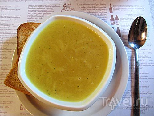 Их особая фишка - клубничный суп на шампанском. Стоит около 200 рублей. Супом, конечно, это не назовешь - скорее, десертом. Но вполне имеет право на существование:)
