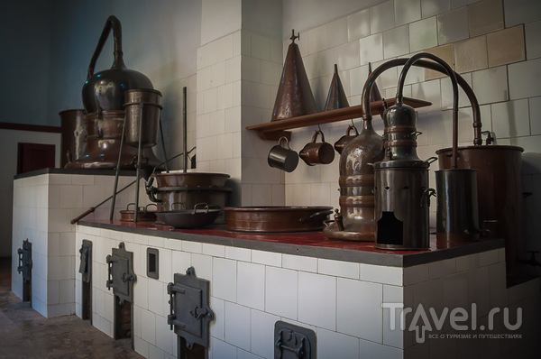 Далее, мы проходим в лабораторию. Здесь на длинной дровяной печи стоят внушительный медный дистиллятор, перколятор и прочая поваренная утварь.. Хоть сейчас начинай готовить любое зелье..