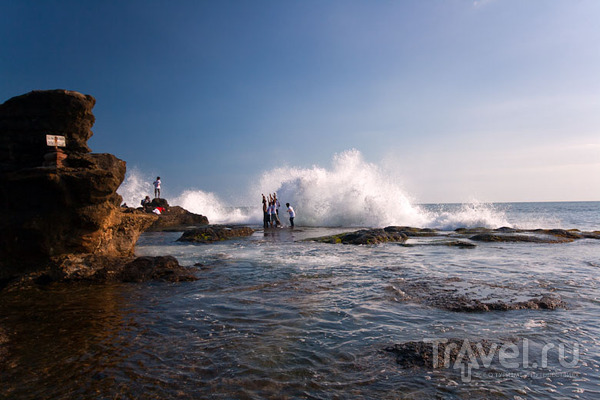 Можно в прямом эфире наблюдать как океан отвоёвывает обратно себе пространство. Кстати, по легенде храм охраняют ядовитые морские змеи. Вообще-то они против злых духов и незваных гостей. Но кто знает, кого они посчитают незваным