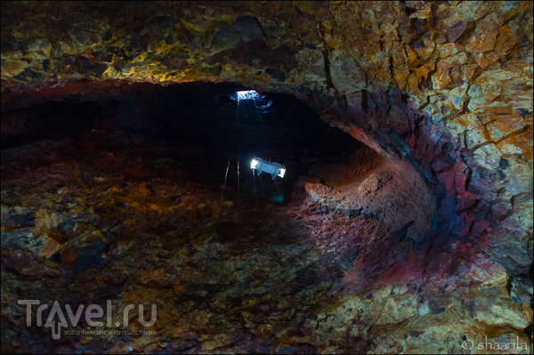 Пешера в лаве. Образована на месте ледника, который подточил извергающийся поток.