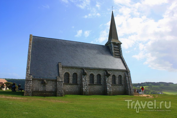 Этрета - живописный уголок нормандского побережья Ла-Манша. Побережье здесь предсталено потрясающими меловыми скалами необычных форм. Алебастровый берег протянулся на сотню километров от Дьепа до Этрета и дальше. Именно в Этрета пейзажи являют собой особенно великолепное зрелище - огромные скалы пронизаны обширными арками, а недалеко от берега одинокая скала, как обелиск, возвышается на 70 м над водой. Грандиозность здешних скал и грохот прибоя оставляют незабываемое впечатление.