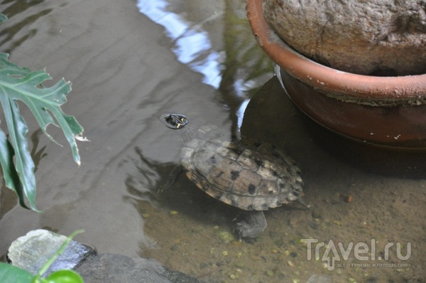 Даже живые черепахи в прудах.