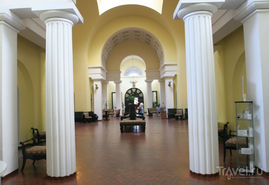 Изначально грязевые процедуры проводили исключительно в теплое время года. Отсюда - такое обилие стеклянных потолков и больших окон. Долгими летними днями здание фактически не нуждалось в искусственном освещении.