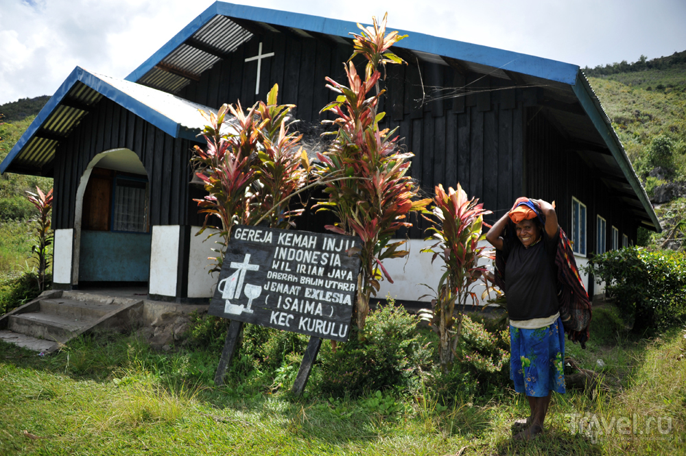 В Дживике все голые именно благодаря мумии и захожим туристам и таксе в 15 российских рублей за фото (для растяп). В заурядных деревнях в долине женщины уже практически без исключения носят традиционную афро-папуасскую одежду, и лишь старики и наиболее упрямые главы семейств расхаживают в котеко. Это и знак независимости от индонезийцев и современного мира и символ того, что есть еще хозяин в доме. Он и дочь за 5 свиней продаст, если надо, да и вообще - чуть что за копье.