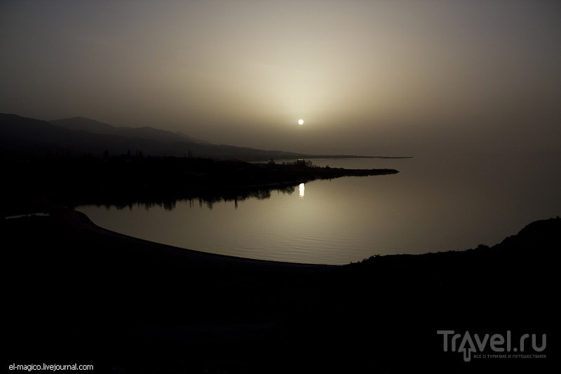 Против Солнца опять получились красивые фото. Вот такой контраст - спереди Иссык-Куль, а сзади свалка битого стекла. Природа и человек