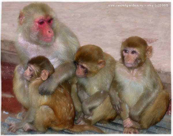 Чуть поодаль от основных дворцов находится группа малых дворцов - к ним мы доехали на рикше. Осмотрев дворцы и решив возвращаться обратно, мы наткнулись на несколько огромных самцов обезьян, расположившихся прямо на нашем пути, на тропинке. Обойти тропинку было никак нельзя. Я долго собирала в кулак свою храбрость, чтобы пройти мимо обезьян. Кто их знает, что было у них в голове - мне все казалось, что они могут прыгнуть и отобрать фотоаппарат или сумку. Но все обошлось.