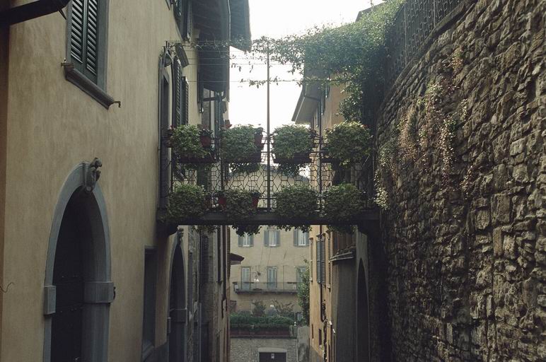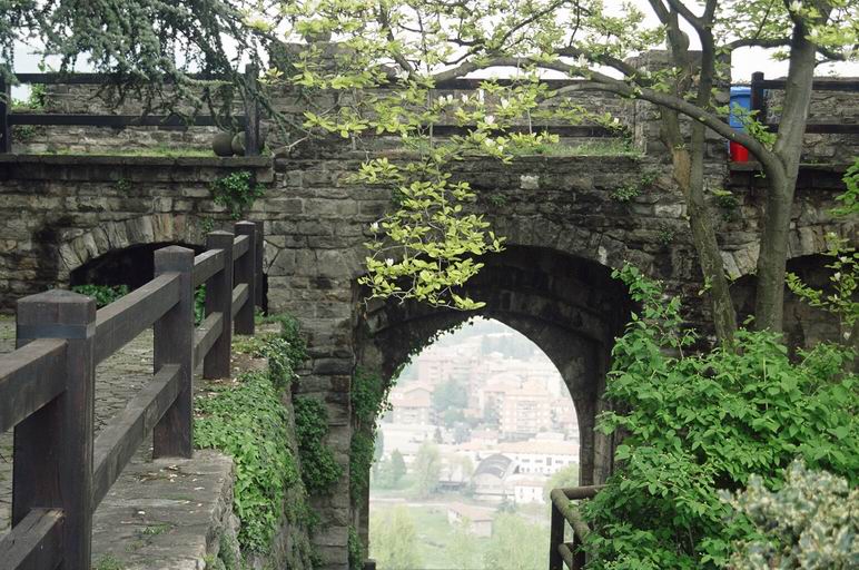 В Бергамо мы провели сутки в исторической части города, которая расположена на холме. Эта часть города окружена высокой стеной, которая в средние века выполняла функции защиты города от внешних врагов. Сегодня стена выполняет функцию разделения времён и предназначения, как бы выделяя и фокусируя наше внимание дополнительным разделителем.