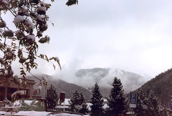 И все же, как я уже говорил, Давос встретил нас первым в году снегом, что в теплой да к тому же цивилизованной стране представляет собой весьма впечатляющее зрелище -- снег лежал на зеленых еще кустах, на рябине и, наконец -- на цветах, которых, как показалось, в Давосе сильно больше чем кустов -- в клумбах на каждом углу и в ящиках под каждым окном. Швейцарцы вообще без ума от цветов, а созерцание таковых на своем рабочем месте чуть ли не гарантировано каждому тамошним аналогом КЗОТа. По крайней мере наши швейцарские сотрудники так и не смогли убедить своего офис-менеджера отказаться от нелепых пробирок с цветами, торчащих в каждом столе ровно таким образом, чтобы их проще было снести каким-нибудь увесистым предметом.