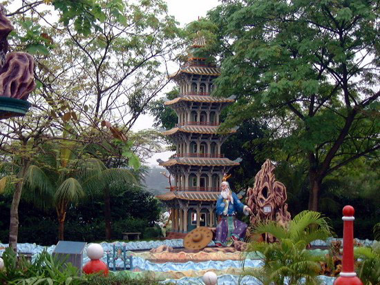 Любят в Сингапуре расставить на улицах национальную скульптуру. Это очень красиво, честное слово. И поскольку наций тут огромное множество, то деревянные самураи мирно соседствуют с китайскими всадниками. Голова дракона огромная... а внутри музей. Этот музей всем советую посетить, гораздо лучше начинаешь понимать восточный люд... Называется он "Музей десяти казней", каждая казнь показана очень натурально, но почему-то не шокирует. Может быть потому, что изначально понятно - казнят только тело, душу потом переселят туда, куда заслужила... Кстати, казни за уклонение от налогов и списывание на экзаменах впечатляют не меньше, чем за убийство или воровство. В магазинах барабаны стучат и прыгают драконы. Злых духов так выгоняют. Наверное, всех уже выгнали, поэтому продавцы ужасно приветливые, улыбаются очень искренне. Кстати, в магазинах есть всё, включая, например, меховые шубы, которые, естественно, при местной погоде ну совершенно никому не нужны. Тут зима сейчас, а если двести километров проехать (пролететь, проплыть) - будет лето. Погода, конечно, не изменится, просто экватор пересечешь и попадешь в другое полушарие.
