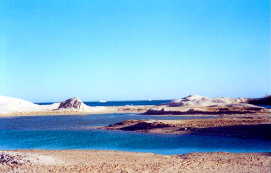 Стоит немного отойти от отеля и зелень сразу сходит на нет. Остается синее и желтое. Песок, небо и море. Хотите, считайте, что это и не пустыня вовсе, а такой большой пляж, который где-то у горизонта заканчивается скалами предгорий Гор Красного моря.
