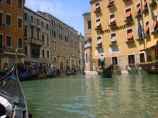 Венецианцы сейчас не пользуются гондолами для своих нужд, у всех есть моторные лодки. Гондола сегодня - исключительно туристический вид транспорта. В Венеции сейчас около 500 гондол. Прокатиться на гондоле в течении примерно получаса стоит около $15, и на всех причалах стоят очереди. Действительно, быть в Венеции и не проехаться на гондоле? Нонсенс. Говорят, что если пассажир понравился гондольеру, то гондольер ему обязательно споет. Не знаю, судя по всему венецианским гондольерам нравятся только японские туристы. Мимо нас проплыла одна такая гондола - в ней сидели четверо японцев, а перед ними колоритный итальянец под аккордеон распевал во все горло французкий шансон. Японцы были в восторге. Мы тоже.