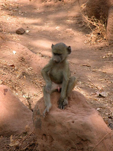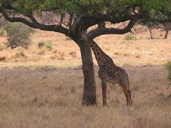 При въезде в парк стандартная процедура, оплата за вход. Въезжаем, лес, через несколько метров уже начинают появляться первые обитатели - небольшие обезьяны. Дальше дорога проходит по мосту через небольшой поток. По его руслу, никуда не спеша, движется большое стадо бабуинов. На нас не обращают никакого внимания, спокойно занимаются своими делами. Время от времени останавливаются, едят, играют. Бабуины постепенно растворяются в лесу, и мы продолжаем свой путь к озеру. На сегодня нам обещали бегемотов. Вот мы и у озера, небольшая площадка для парковки, встаём. В вдалеке, стадо бегемотов на берегу мирно занимается своими делами. Два представителя данного вида видимо чего-то не поделив встают друг напротив друга разинув пасти. Замечательное и очень редкое зрелище. Правда далековато, восьмикратного зума в цифровом Никоне на который я снимаю явно не хватает. С завистью смотрю на соседний джип, ребята подготовились основательно, таких здоровенных объективов и в магазине не часто увидишь, это больше похож на телескоп. Вот ещё одна редкая картина, из озера выходит бегемотиха со своим малышом. Немного прогулявшись по берегу, словно хвастаясь своим чадом, мамаша возвращается в воду. На заднем плане что-то розовеет, берём бинокль, огромное количество розовых фламинго но, к сожалению, очень далеко, а подъехать поближе никак нельзя. Насмотревшись на бегемотов, мы поворачиваем назад в лес. Непринуждённо катаясь, наблюдаем за слонами и обезьянами. На одном из поваленных деревьев загорает большая ящерица. А когда же будут львы? А здесь нет львов, львы живут в Серенгети. Ну что же, едем. Покидаем парк и направляемся в национальный парк Серенгети, гордость Танзании. Дорога хорошая, джип едет быстро, ни кочек, ни ухабов. Как нам потом рассказали, дорогу это строят японцы. Немного странно, не правда ли? Но в Танзании, так же как и у нас, очень любят тратить деньги не по назначению, то есть разворовывать. Деньги, выделяемые международными благотворительными организациями на строительство дороги неоднократно, куда то пропадали, и благотворители были вынуждены привлечь иностранного подрядчика. Вот хорошая дорога закончилась и следующие 100 километров нам предстояло ехать по настоящей танзанийской дороге. А это просто утрамбованная земля. От проезжающих мимо машин поднимаются облака пыли. Кондиционера в машине нет, мы едем с открытыми окнами и при виде встречной машины желательно закрывать окна. Пыль повсюду. Дорога вся в ухабах, а в некоторых местах она вообще больше похожа на стиральную доску. Несмотря на это, на прямых участках мы движемся со скоростью 70-80 км/ч. Toyota хорошая машина. Мы спешим, нам сегодня надо въехать в Серенгети, где мы будем ночевать. Ворота в парк закрывают в 18.30, в это же время и темнеет. Пересекаем ворота ровно в 18.00. Мы в Серенгети. Ещё примерно 30 километров и мы будем в отеле. Но где же львы?