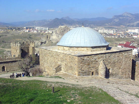 В Коктебеле мы пробыли 2 дня, один из которых решили посвятить поездке в Судак, чтобы осмотреть Генуэзскую крепость. За 30 гривен (180 рублей) и 40 минут таксист, преодолев на своей машине 2 перевала с прекрасными видами и остановившись на парочке смотровых площадок для того, чтобы мы могли сделать пару снимков, довез нас до Судака. Для того, что бы не спеша обойти всю крепость, нам потребовалось 2,5 часа. Вход в крепость для взрослого 4 гривны (24 рублей), карта-путеводитель по крепости еще 5 гривен (30 рублей).