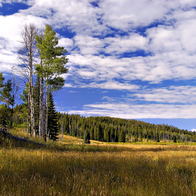 ...Первый наш вечер. Особой усталости нет, поскольку накануне шли почти по горизонтальному рельефу, вдоль обмелевшей поймы реки Змеиной (Snake River). Все это время на севере хорошо просматривалось Йеллоустоуновское плато. Высокая, порыжевшая трава изобиловала крупными кузнечиками, которые с шумом и треском разлетались в разные стороны при нашем появлении. Конец дня ознаменовался первым бродом, а после ужина мы долго и тщательно подвешивали пакеты с едой на отдалённую сосну - здесь водятся медведи и следует об этом помнить. Спал плохо - всю ночь где-то неподалеку протяжно и тоскливо кричал изюбрь, а в ногах спальника мешал и не давал полностью вытянуться кофр с фотоаппаратурой. Под утро чуть замерз - палатка покрылась инеем и влага нашего дыхания превратилась в конденсат, который начинал капать при малейших колебаниях ее тента. Впредь на ночь одевал тельник, носки и трико.