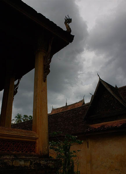 Монастыри по-лаосски называются "Ват". В ват разрешается заходить всем, - и не только по религиозной надобности. Торговцы на трехколесных мотороллерах с кузовом приезжают предлагать свой товар. Маляры с кистями и банками краски идут подновить статую Будды – а то позолота после сезона дождей совсем облупилась. Приятели приходят поболтать с послушниками - учениками монастырской школы. Словом, монастырь похож на деревню, в которой идет обычная жизнь. Кто-то огородничает, кто-то метет двор, а кто-то развешивает на веревках для просушки выстиранную монастырскую одежду всех оттенков оранжевого, - от яркого, как кожура мандарина, до почти коричневого.