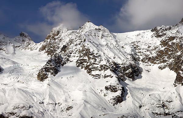 городок Courmayeur. В 5 км к северу от него, уже почти на границе с Францией, лежит деревня Entreves, откуда на вершину