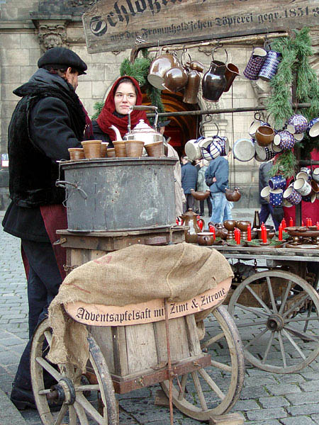 После обеда наконец-то удалось пойти осматривать старый Дрезден, которому в 2006 году исполнится целых 800 лет! Удобный городской транспорт (трамваи ходят по расписанию и время до следующего указано на табло) оперативно доставил нас к площади с Рождественским базаром.