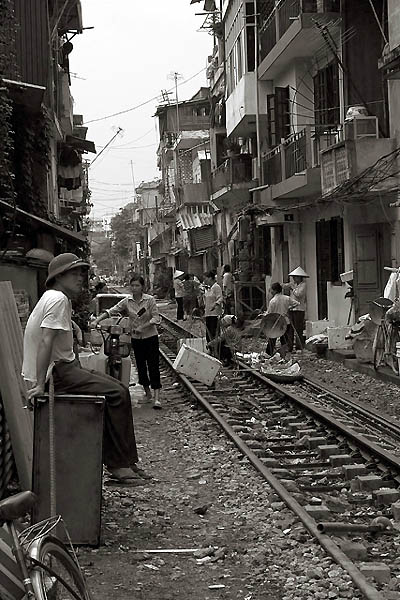 Район 36 улиц начал застраиваться в 15 веке, и каждое столетие добавляло к его облику что-то свое. Загнутые кверху черепичные китайские крыши – и рядом колониальные решетки и деревянные ставни-жалюзи от солнца. Причудливые текучие линии арт-нуво – и тут же пришедшая за ним конструктивистская геометрия. Впрочем время и влажный климат постепенно сглаживали различия. Барокко и классицизм одинаково покрывались черным налетом грибка и плесени, ажур решеток исчезал под слоем ржавчины, - и вот уже на каменных буквах "Нотеl Asia" развешано для просушки белье, а к древней пагоде новые жильцы пристроили каждый по отдельному дощатому крыльцу. Облик старых кварталов продолжает меняться и сейчас, и увы не к лучшему. Трудно сказать, что вредит исторической среде больше – естественный процесс обветшания зданий или попытки их обитателей ему противостоять. Люди не могут жить в домах, где нет туалета и воды, а потолок грозит упасть на голову, государству не под силу финансировать комплексную консервацию зданий, - и каждый перестраивает или попросту латает свой дом как может. 36 улиц исчезают, как Венеция - количество не подвергшихся перестройке, сохранивших исторический облик домов стремительно уменьшается, а многие из оставшихся настолько ветхи, что реставрации уже не подлежат. И несмотря на это удивительная, особая аура старого Ханоя настолько сильна, что гуляя по 36 улицам, не испытываешь тягостных чувств. Происходящее с историческими кварталами скорее напоминает то, как джунгли постепенно поглощают покинутый людьми город, превращая его в удобный дом для птиц и зверей. В этом естественном процессе нет ничего отталкивающего – просто одно время поглощает другое, одна жизнь другую. И даже больше, - если бы каким-то чудом вдруг нашлись деньги на реставрацию всех сохранившихся зданий, то пожалуй исчезла бы та особая атмосфера, то очарование, которые и привлекают туристов в старых кварталах. Впрочем они исчезнут и так, когда благосостояние жителей вырастет, дома будут перестроены, улицы убраны, а уличных торговцев заменят современные магазины…