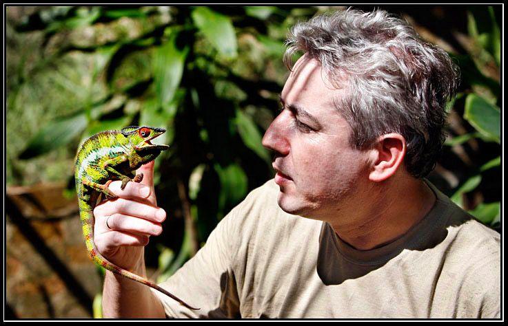По дороге мы заезжаем в небольшой частный "зверинец" - Madagascar Exotic ("Экзотика Мадагаскара"). На спящих крокодилов можно внимания не обращать. Самое интересное - в вольерах. Громадные хамелеоны самых немыслимых расцветок и крохотные хамелеончики, гекконы и геккончики, помидорные жабы и мадагаскарские питоны, бабочки и пальмы равенала ("дерево путешественников"). Всё можно потрогать и подержать в руках, если есть желание. В общем, очень хорошее место для приобщения к эндемизму.